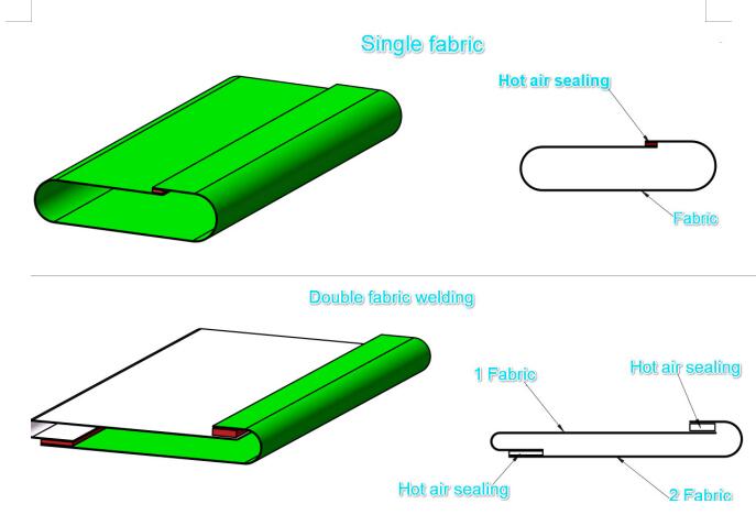 If the duct diameter is under 1m, it use 1 piece fabric folding , if the diameter over 1m, it use 2 pieces fabric splicing. Please reference the follow photos :